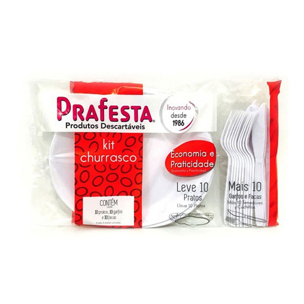 SKU: 11867 | Descrição: KIT CHURRASCO 10PRATO 10GARFO 10FACA PRAFESTA | Marca: PRAFESTA | Segmento: GERAL