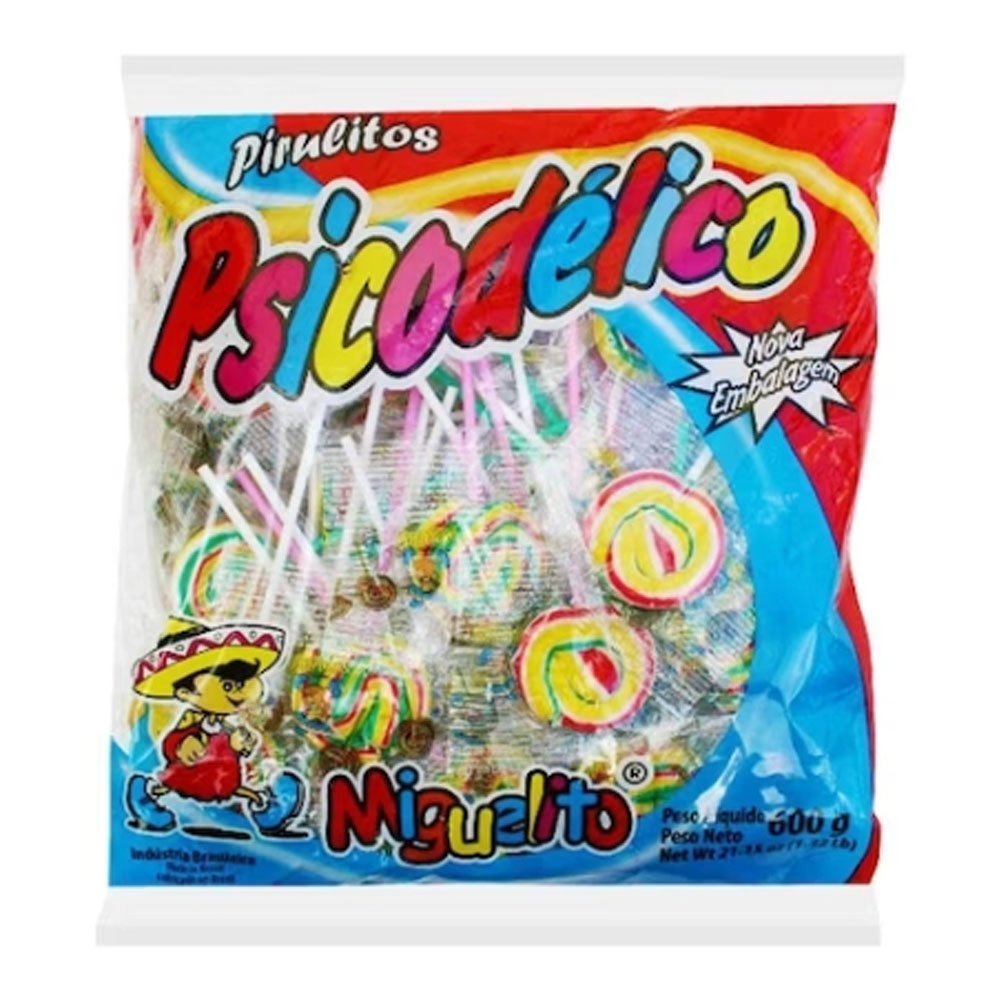 SKU: 13393 | Descrição: PIRULITO PSICODELICO 50UN 600GR MIGUELITO | Marca: MIGUELITO | Segmento: GERAL
