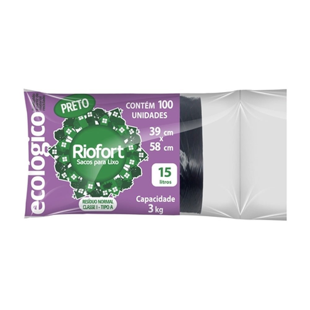 / SACO PL LIXO PRETO 15LT 100UN RIOFORT