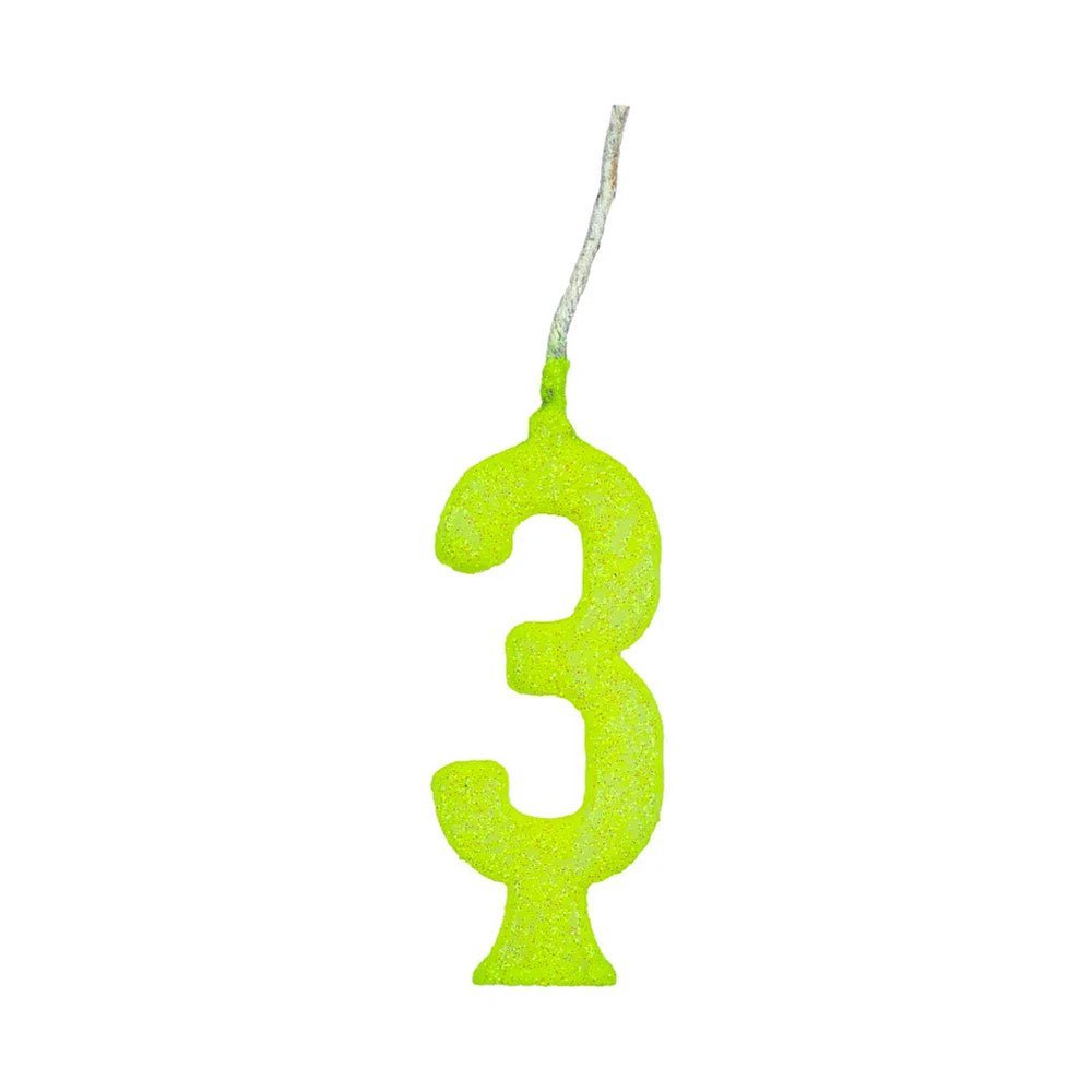 SKU: 19690 | Descrição: VELA PARABENS GLITTER NEON AMARELA N.3 REGINA | Marca: REGINA | Segmento: GERAL